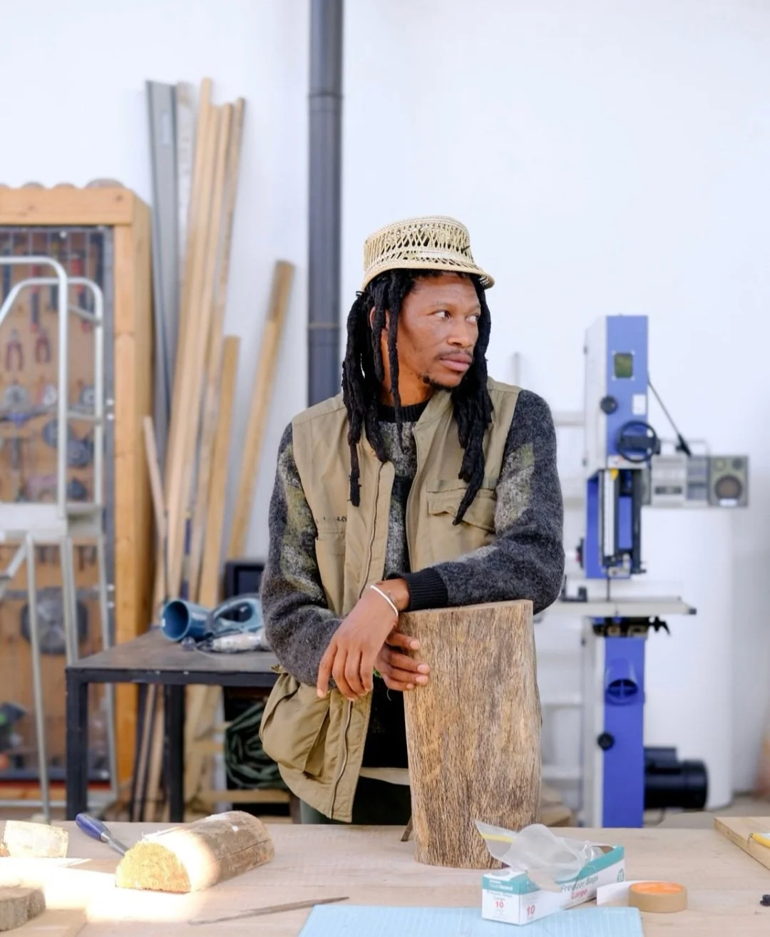 Atang Tshikare (b. 1980, Free State Province, South Africa) is a self-taught, multidisciplinary artist based in Cape Town. Over a twenty-year period, his practice has evolved from street art and drawing to designing limited-edition collectible objects and sculptural furniture. However, he now primarily works as a visual artist, focusing mainly on sculpture, as well as drawing and performance. Atang Tshikare’s works have been widely exhibited both in South Africa and internationally. He has showcased his art at museums such as the Metropolitan Museum of Art in New York (2021) and the Zeitz Museum of Contemporary Art Africa (2019), as well as at art and design fairs like Design Miami/Basel (most recently in 2021), PAD London (2019), Design Discourse in Austria (2016), and Design Days Dubai (2013). Tshikare was selected as a featured designer at 100% Design South Africa (2014) and Design Indaba Emerging Creatives (2012). Most recently, his sculptural works were featured in a solo exhibition at the renowned Everard Read Gallery in Cape Town (2024).