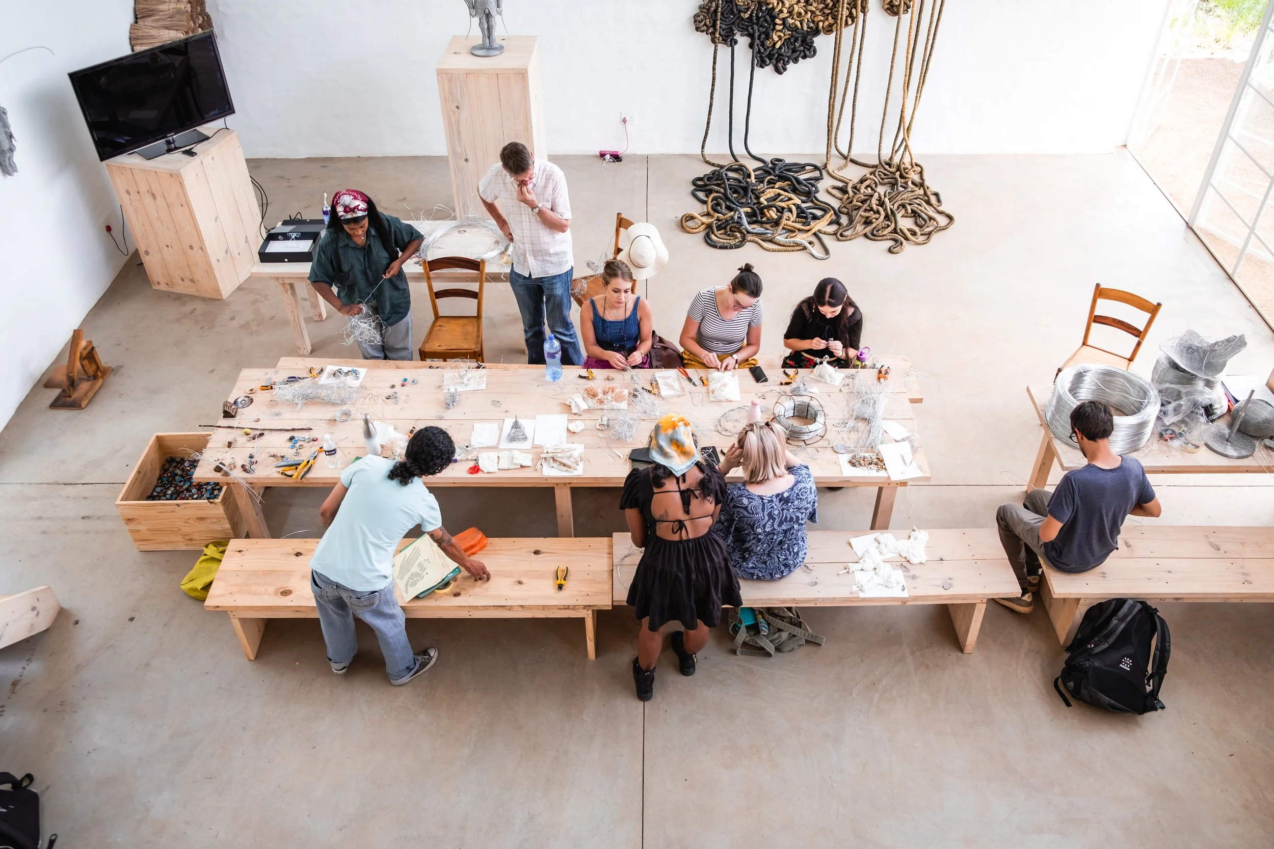 To this end, the four-day workshop with students from the University of Johannesburg, the University of Pretoria, and the University of the Witwatersrand invites participants to handle and experiment with the raw materials used, gaining a deeper understanding of their methodology, the labour involved, and the limitations and possibilities afforded by each material. It focused, in particular, on slow, repetitive processes, demonstrating the haptic nature of their work and the idea, often expressed by Oltmann, of “following the material”; a kind of call and response that is receptive to the material and the limitations and possibilities of working with different materials.