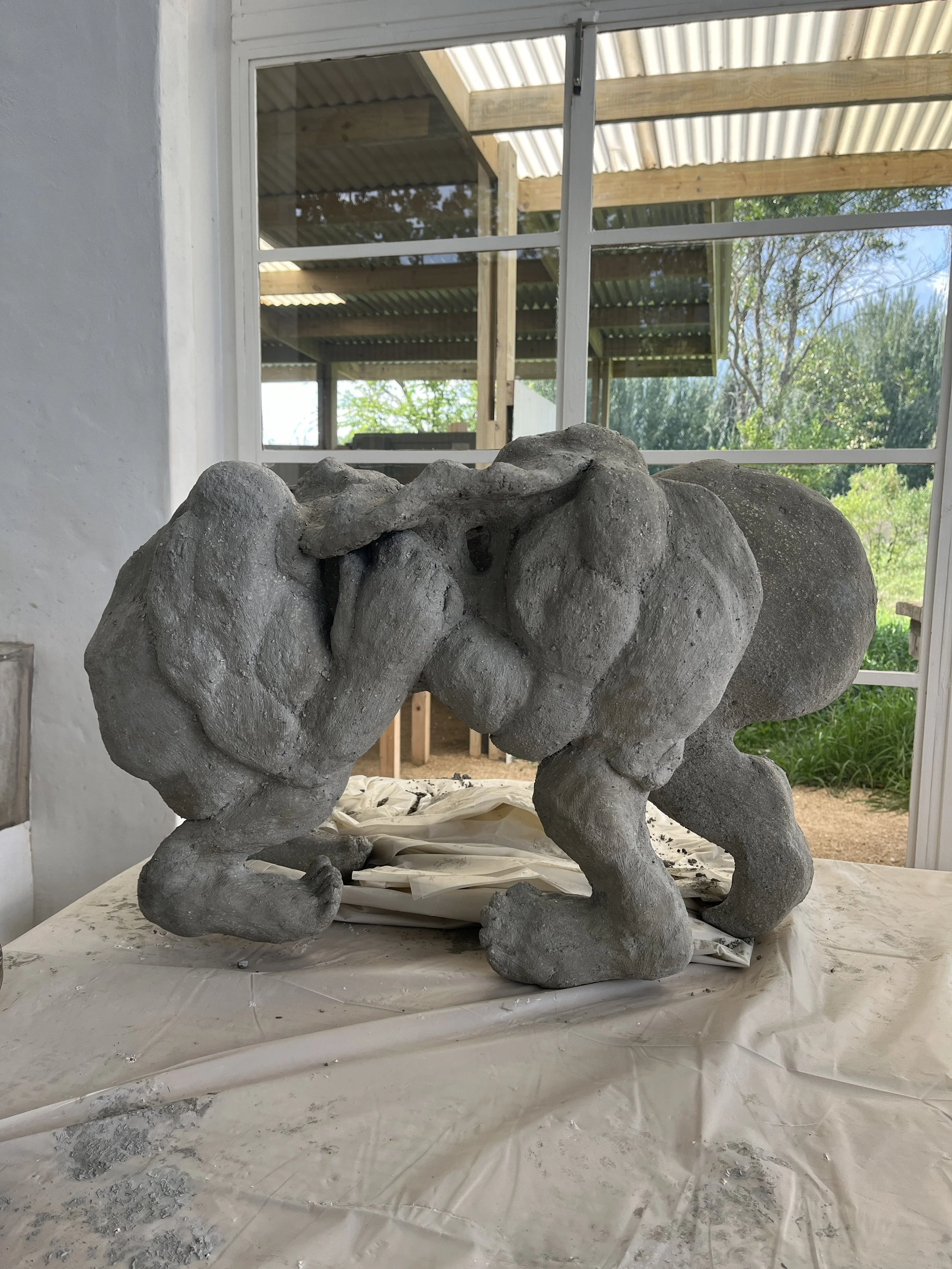 Premised as an extension of these programmes, it introduced participants to some of the core concerns, marrying the former’s interest in maquette-making as an essential part of sculptural practice and the latter’s approach to the use of recycled waste and its theoretical concerns with the circular economy. To this end, the ten participants created their own maquettes from recycled waste (sourced on site) and concrete. Two of the exhibiting artists from Small Things, Nandipha Mntambo and Beth Diane Armstong, also spoke to participants about their own approaches to maquette-making.